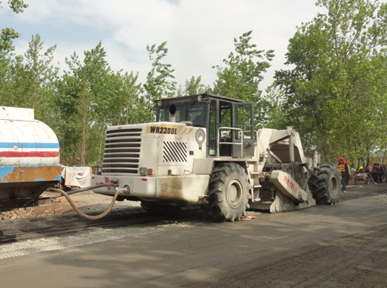 2012年3月,我公司生產(chǎn)的一臺600馬力WR2300L路面冷再生機在河南省長葛市S325省道進行路面冷再生施工,該路段為省道,面層為6-7公分的瀝青混凝土,穩(wěn)定層為水泥碎石穩(wěn)定層。業(yè)主對該路段的大修要求是用銑刨機將瀝青面層銑刨清運,然后用冷再生機對下面的水泥穩(wěn)定土基層進行就地冷再生施工。在精心組織施工下,一臺我公司生產(chǎn)的WR2300L路面冷再生施工質(zhì)量穩(wěn)定,深獲業(yè)主好評,綜合評價勝過另一標段的國外同類機型,在施工后期,業(yè)主只留一臺我公司的WR2300L冷再生機施工作業(yè),并承諾在以后的工程中繼續(xù)使用我公司生產(chǎn)的WR2300L路面冷生機。在實際的路面冷再生施工中獲得國內(nèi)公路施工單位的如此贊譽,使我公司廣大員工深受鼓舞,這是我公司多年勤奮努力的結(jié)果,追趕國外先進公司路面冷再生機的性能,這是我公司多年的目標,現(xiàn)在這一目標已部分實現(xiàn),國外先進機器的性能并不是國內(nèi)生產(chǎn)企業(yè)做不到的,目前我公司生產(chǎn)的600馬力冷再生機,在機器的綜合施工效率、噴水計量精度、銑刨鼓的耐磨性上均已處于國內(nèi)領(lǐng)先水平。我們深信辛勤的努力可以獲得進步的回報,我們也將繼續(xù)努力,開發(fā)更先進的機型,努力回報用戶,回報社會。
