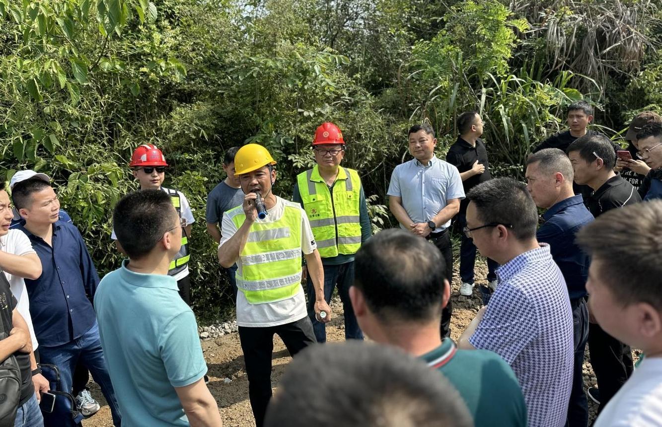 觀摩組在S508線路面改善工程施工現(xiàn)場了解舊水泥混凝土板全厚式就地冷再生工藝